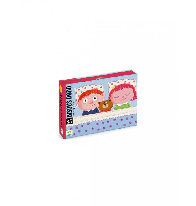 Découvrez Bisou dodo de Djeco, un jeu de cartes adapté aux plus petits dès 3 ans, qui deviendra vite un rituel au moment du coucher : un oreiller, un drap et un doudou à trouver, des bisous à recevoir et... bonne nuit!