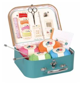 Facilement transportable, elle contient le nécessaire : des aiguilles à tricoter, des pelotes et du fil de différentes couleurs, des aiguilles, un mètre ruban, un dé à coudre, des petits boutons et une paire de ciseaux. Il y a également un manuel explicatif pour aider votre enfant. Idéal pour passer un moment en famille et faire une activité créative.